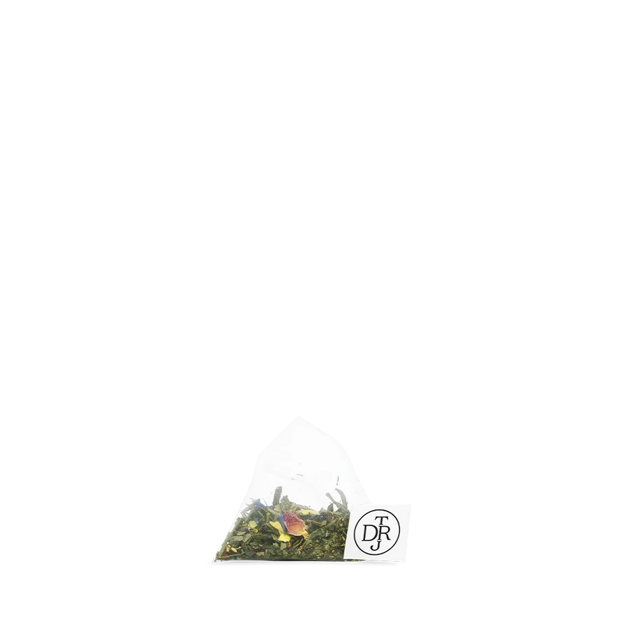 Denne ikke-fermenterede Sencha grønne te minder om sollyset tidligt om sommeren, og dufter vidunderligt af frisk græs og farvede blomsterblade. Pyramidefilter lavet af nedbrydelig majsstivelse.