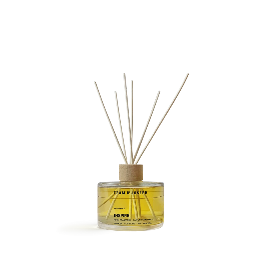En duft til dit hjem. Udsøgte naturlige essenser af grapefrugt, litsea og japansk mynte afslapper, opfrisker og inspirerer - sanseligt berørt af jasmin, patchouli og rosenpelargonie i harmoni med stenfyr.